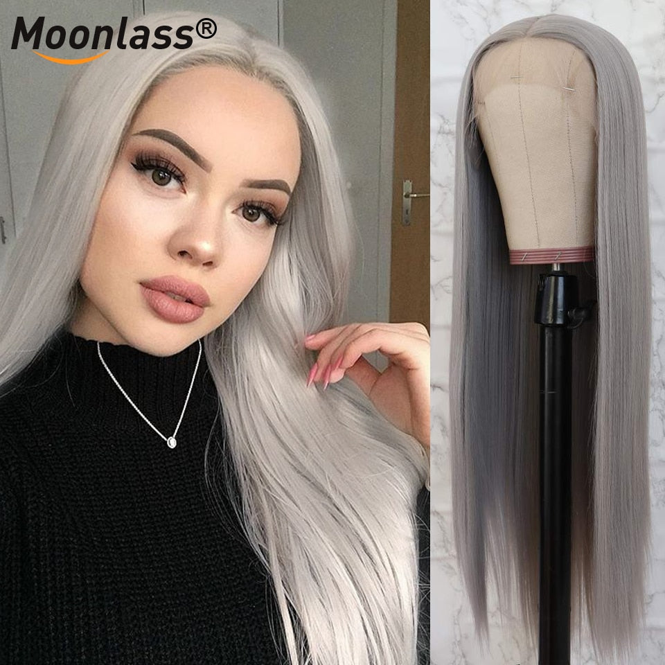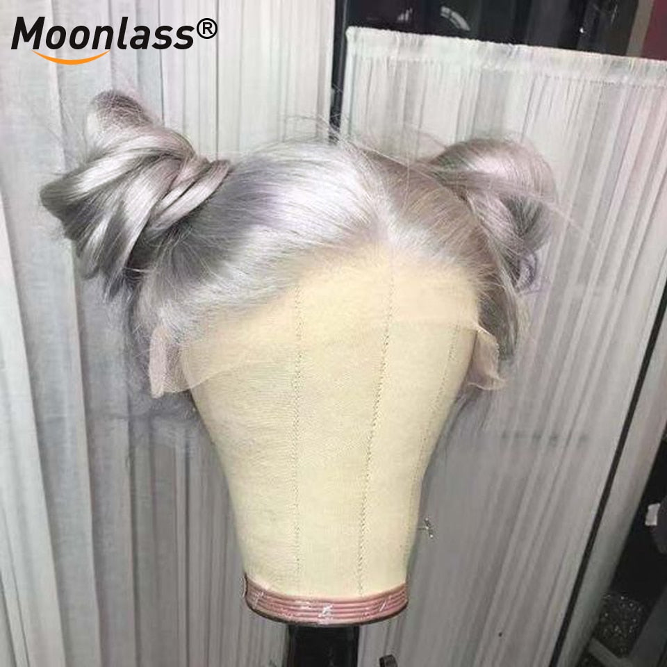 Grey 30 Inch Straight Lace Front Wig Human Hair Pre plucked Colored Lace Front Human Hair Wigs HD Transparent Lace Frontal Wig