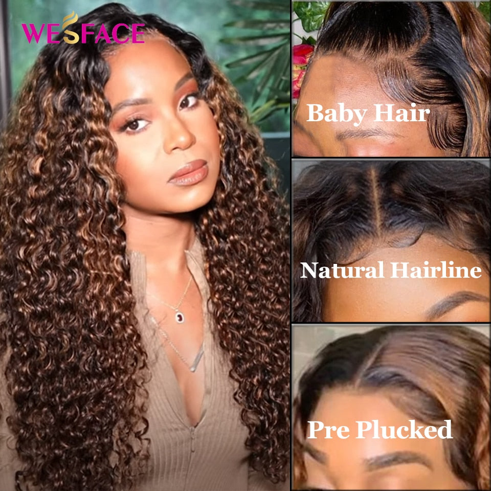 Brown Ombre Human Hair Wigs 13x4 Curly Lace Front Human Hair Wigs for Black Women Brazilian Lace Part Curly wigs Remy's hair 150% Hair Material: 100% Natural Human Hair Wigs