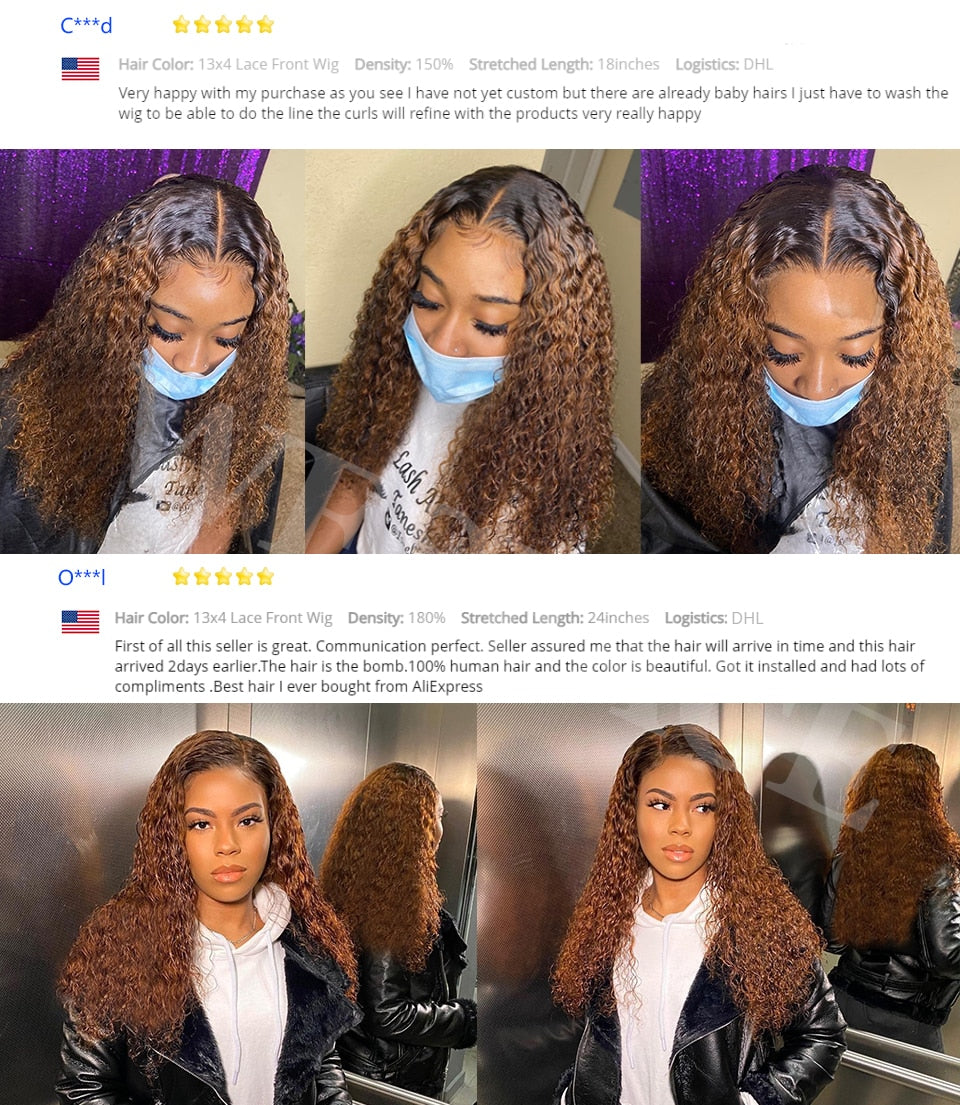 Brown Ombre Human Hair Wig 13x4 Curly Lace Front – Brooklyn Born Cosmetics