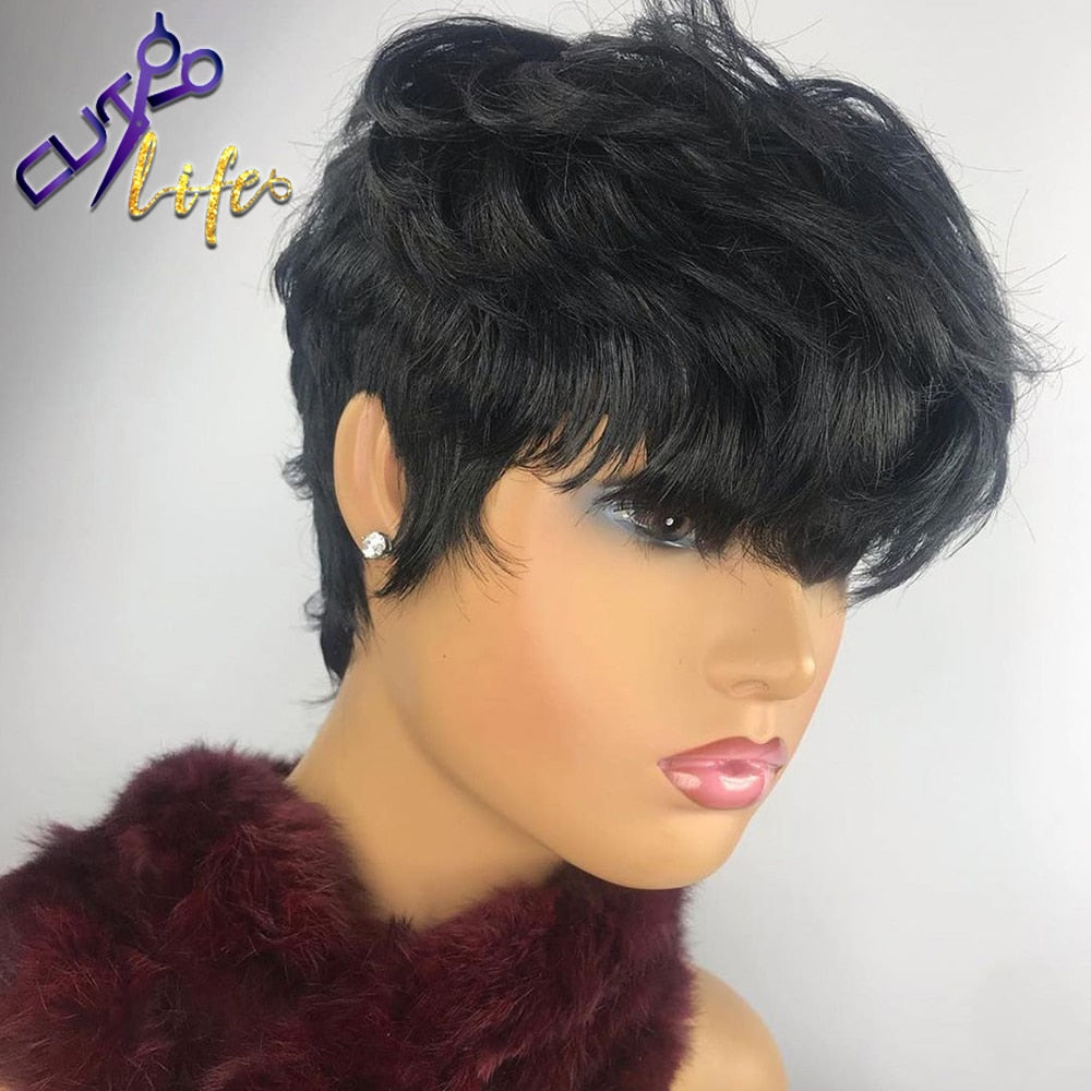 Kimme Short Wavy Bob Pixie Cut None Lace With Bangs Remy Brazilian Hai – Brooklyn Born Cosmetics