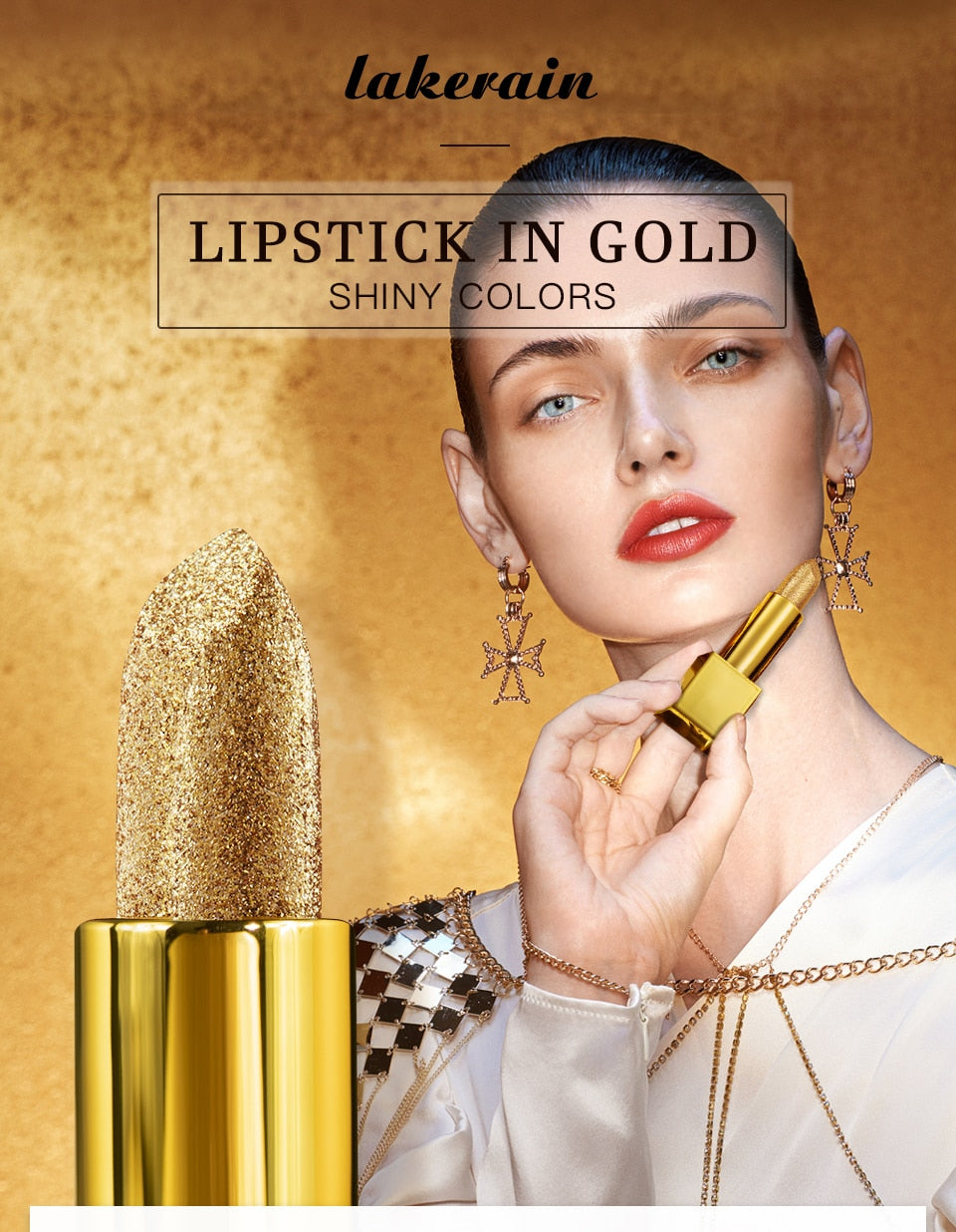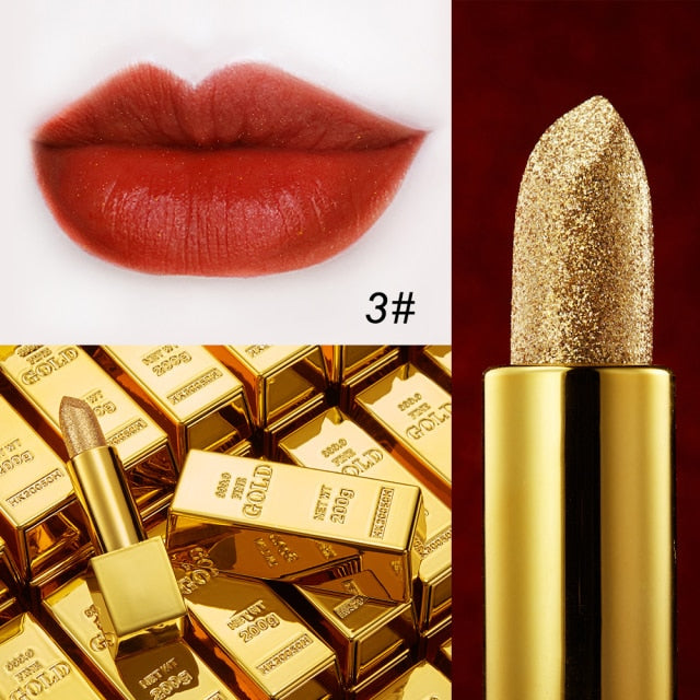 5 Colors Gold Lipstick with Glitter Lip Gloss Long Lasting Velvet Nude Lipstick