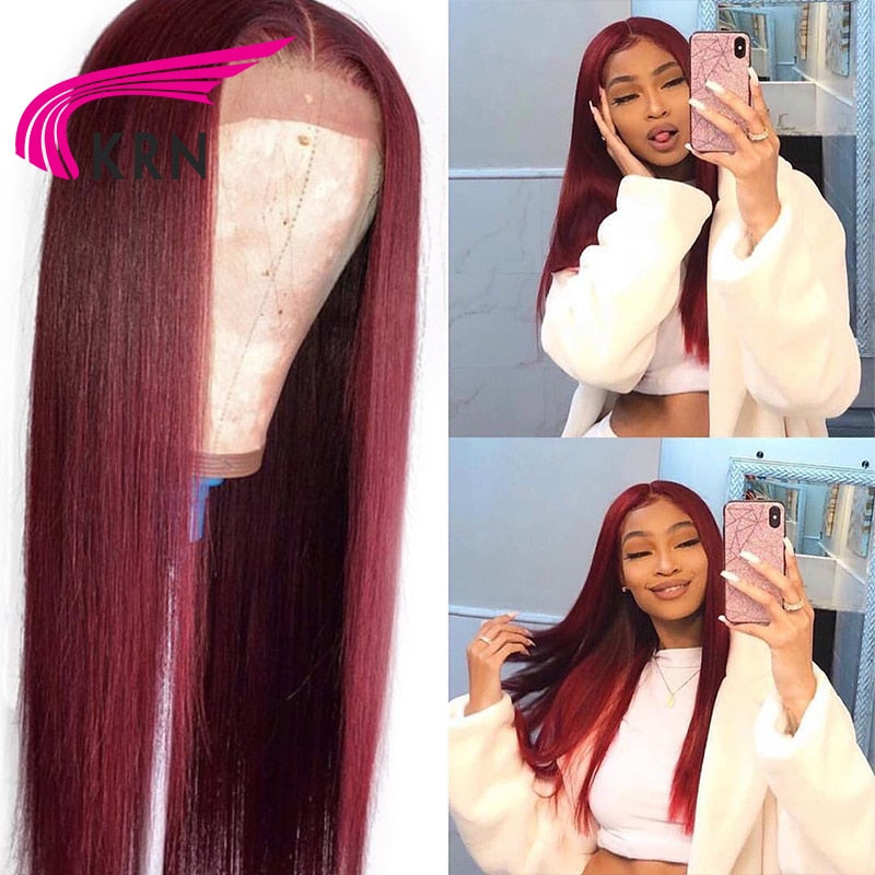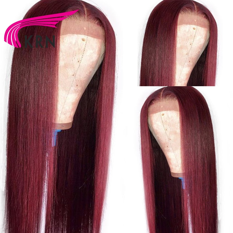 13*4 Red Wig Human Hair Burgundy 99J 150% Colored Human Hair Wig Straight Ombre Lace Front Wig Pre Plucked Brazilian Remy Wig