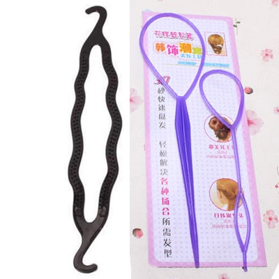 2 Styles Hair Styling Clip Stick Magic Sponge Bun Maker Braid Tool Hair Clip Hair Accessories for Women Girls Headwear Headband