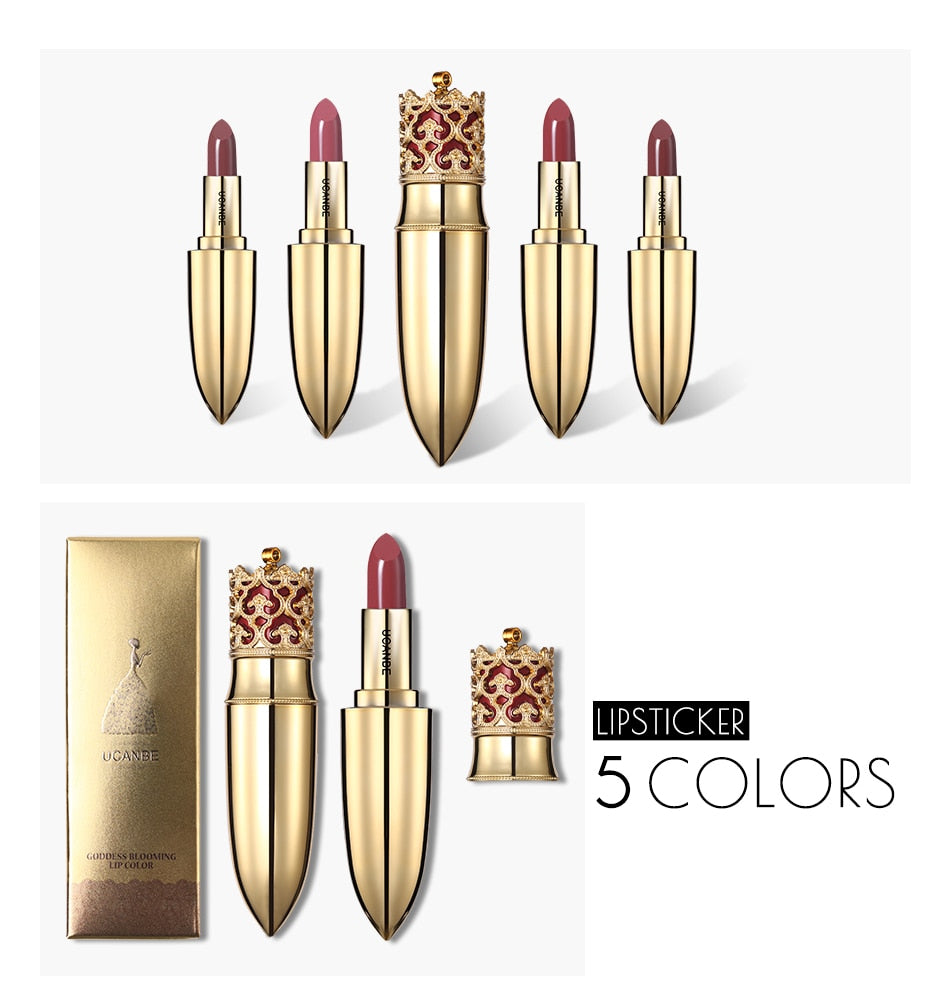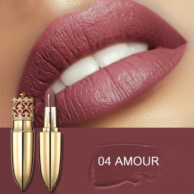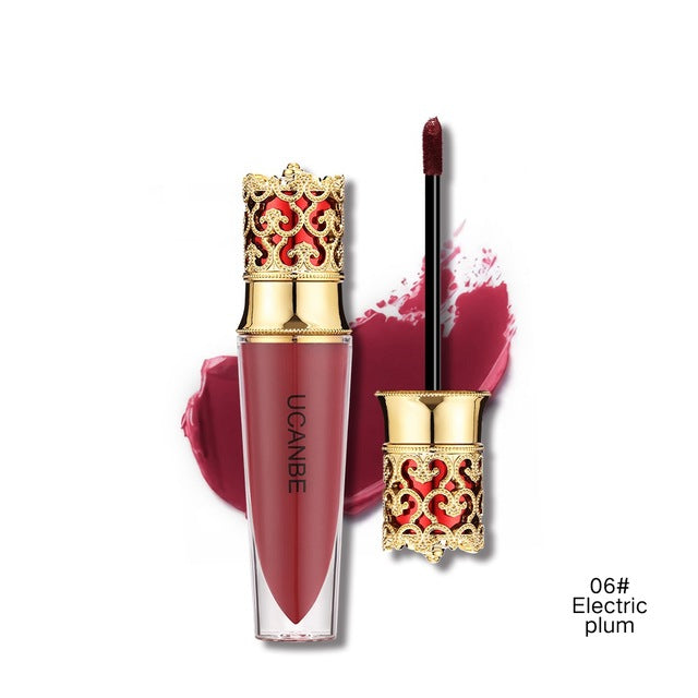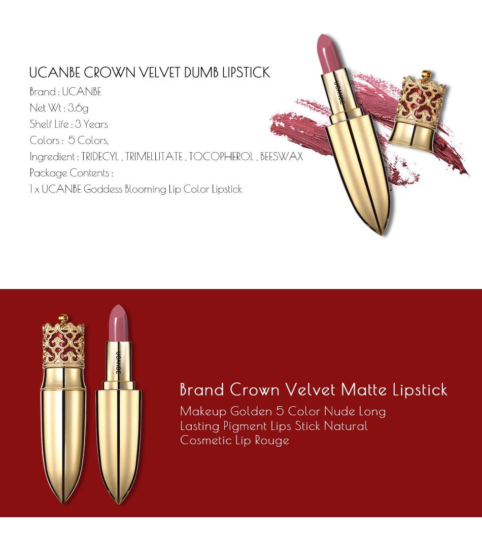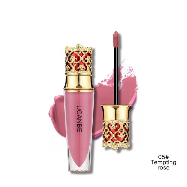 Golden crown designed with soft shimmer matte velvet matte texture liquid. It's easy to apply on lips and not dry.