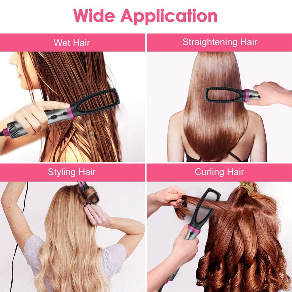 5 in 1 Multifunctional Hair Dryer Volumizer Brush Roller Rotate Styler Comb head Styling Straightening Curling Iron wet dry use