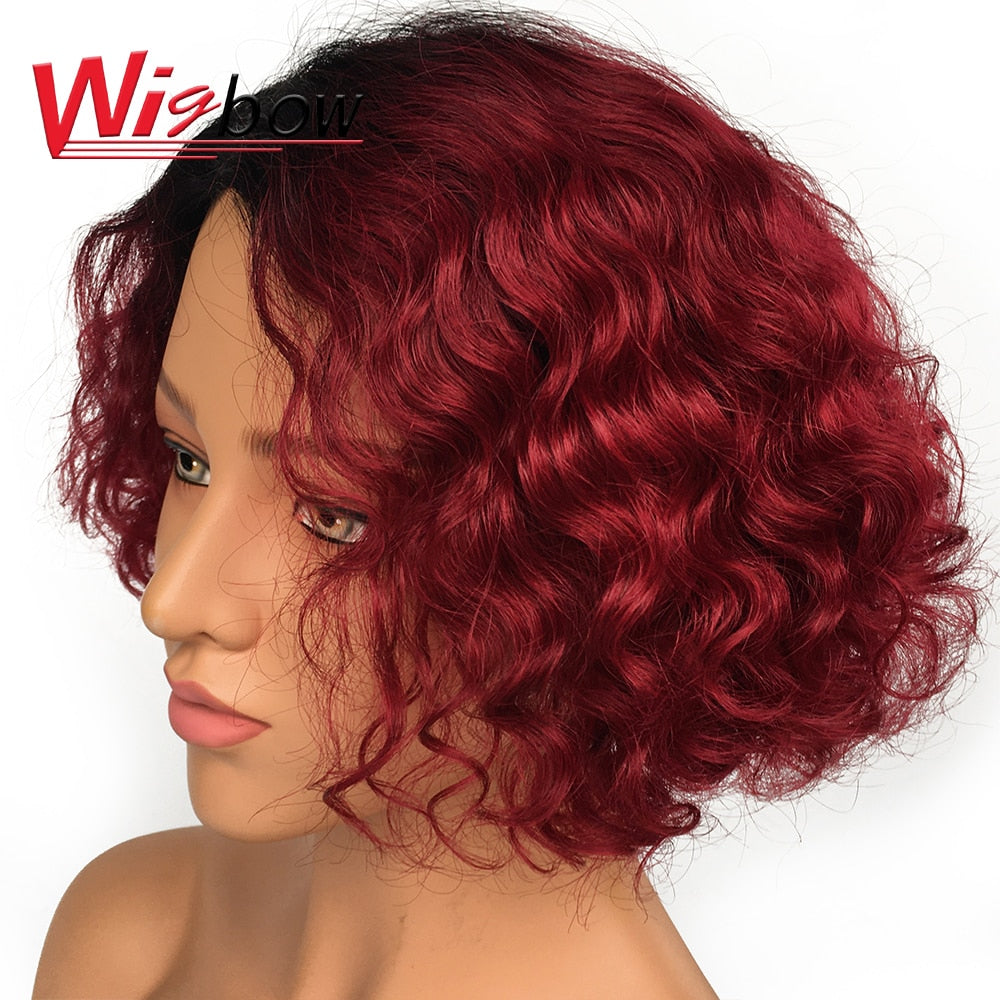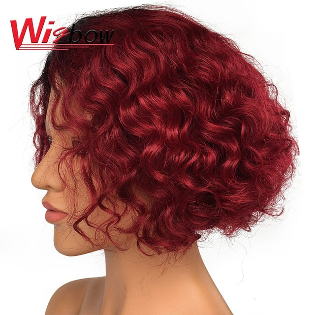 Material: Brazilian Remy Human Hair Wigs Length: 10 Made Method : Deep wave Human hair wig color: T1B/30 T1B/BUG T1B/Grey P1B/BUG P1B/30 Ombre Human Hair Wig