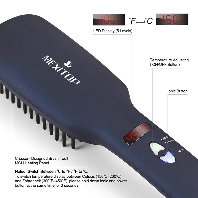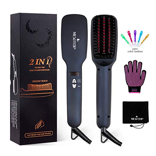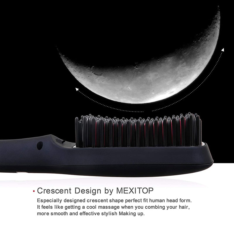- 4 In 1 Functional Straightener Styling Brush Comb, 4 Different Models in 1 Powerful Beauty Weapon: A brush, the crescent shape fitting for head form and lead-in teeth, perfect for your less, long or fringe. The ionic brush helps to get your hair more smooth with less hair knotting. MCH Heating for hair straightening. You can also use these function at 1 time for your hair styling. No more need to bring your brush, straightening iron but only a Crescent Brush.