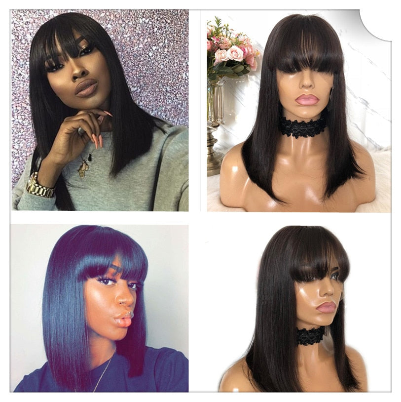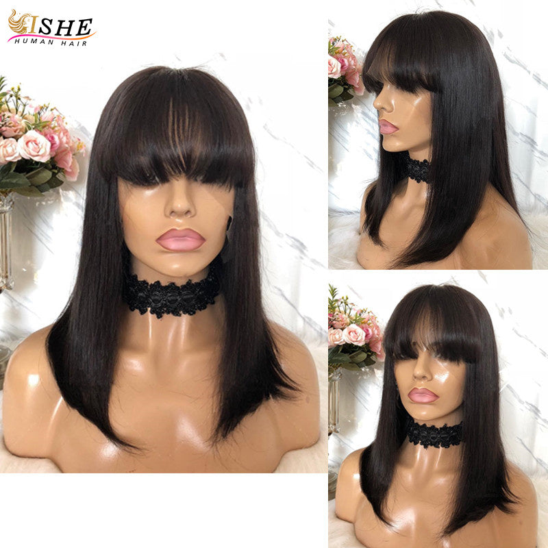 ISHE Ombre Bob Wigs Red 13x6 Lace Front Human Hair Wigs With Bangs Indian Remy Hair Straight With Baby Hair Full End For Women With Bang Black Hair