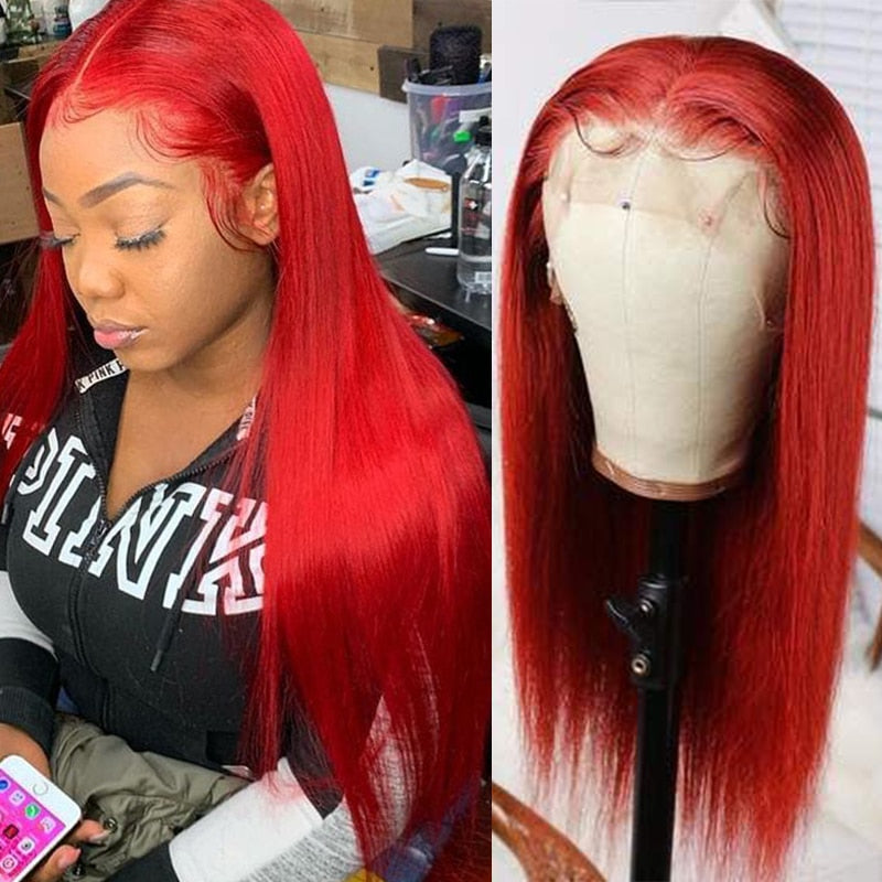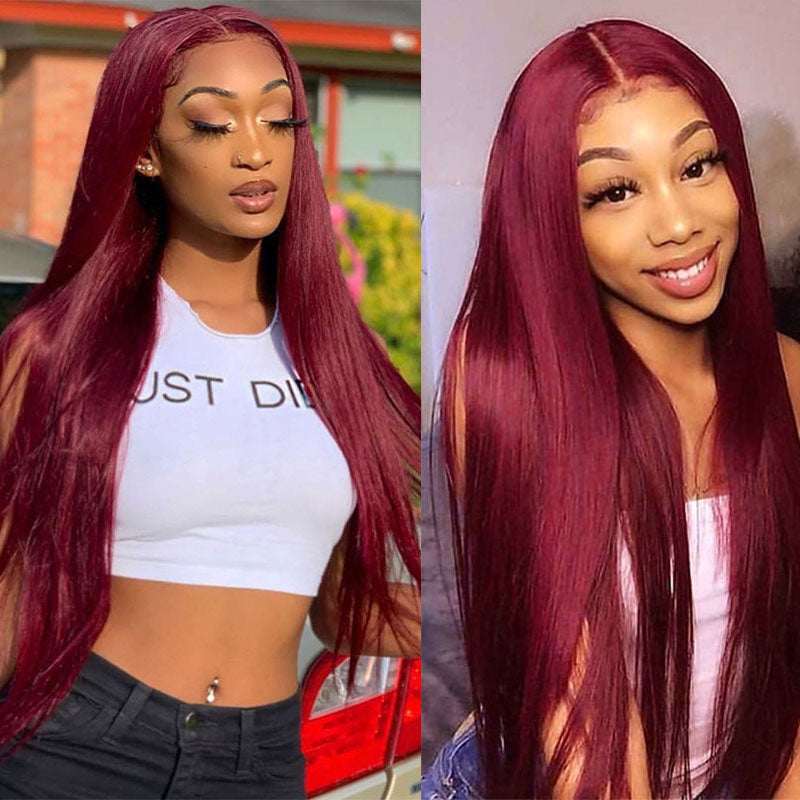 Peruvian Straight Hair 13X1 Lace Front Wig Human Hair Wigs 99J Red Burgundy Pre-Plucked 180% Remy Human Hair Deep Part Wigs