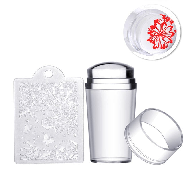 Biutee Design Pure Clear Jelly Silicone Nail Art Stamper Scraper with Cap Transparent 2.8cm Nail Stamp Stamping Tools